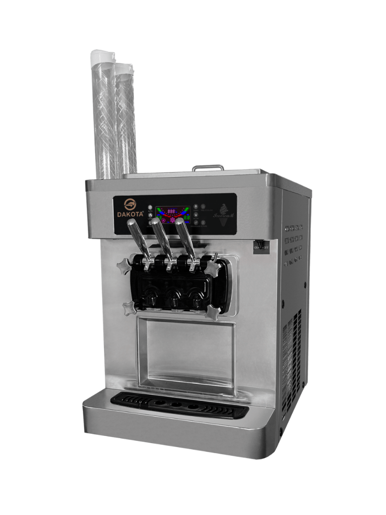 Máquina de helado soft ideal para negocios que buscan ofrecer helados cremosos y deliciosos. Produce 3 sabores con textura regulable. Fácil de usar y limpiar, con sistema que mantiene la mezcla fría y lista para servir.