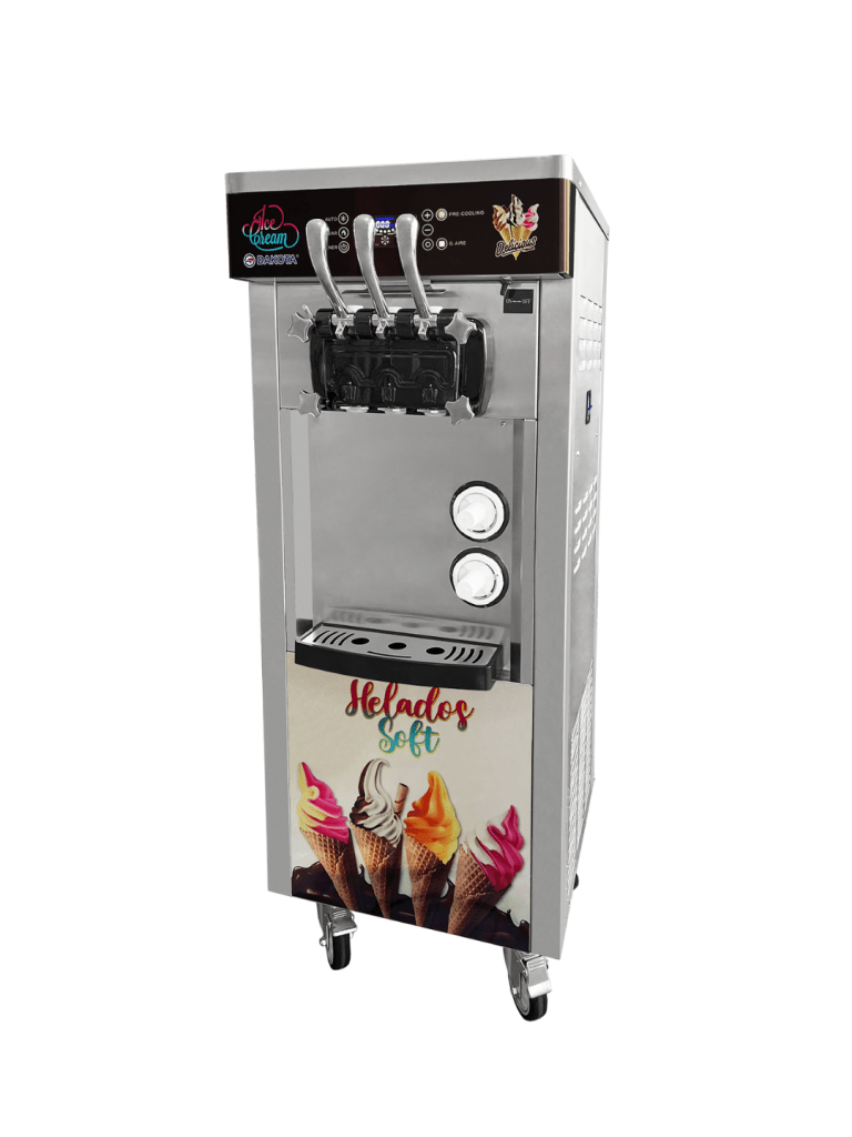 Máquina de helado soft ideal para negocios que buscan ofrecer helados cremosos y deliciosos. Produce 3 sabores con textura regulable. Fácil de usar y limpiar, con sistema que mantiene la mezcla fría y lista para servir.