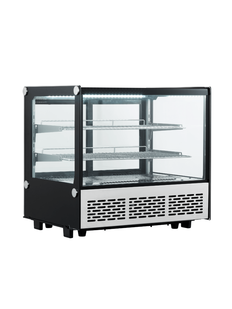 La uso para postres en vaso y cheesecakes. La iluminación interna y el vidrio frontal hacen que todo se vea súper tentador.