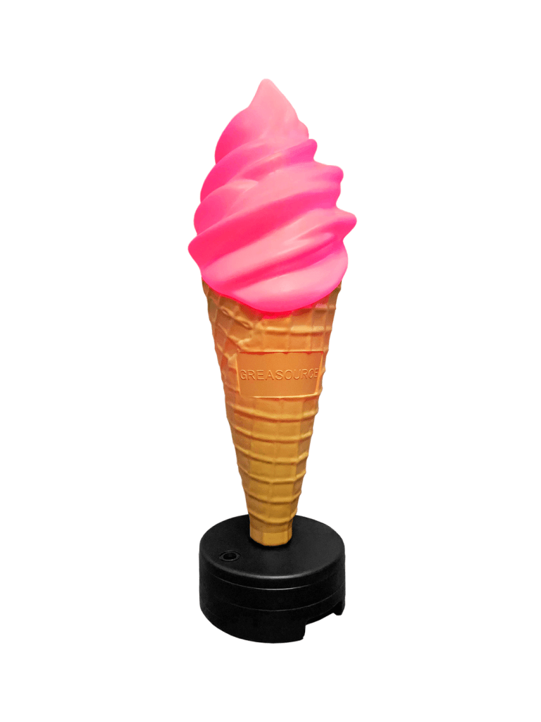 Lo usamos como punto de referencia, normalmente digo: donde veas el cono de helado gigante, ahí es. Es resistente, no consume casi energía y se limpia fácil. Es publicidad fija.
