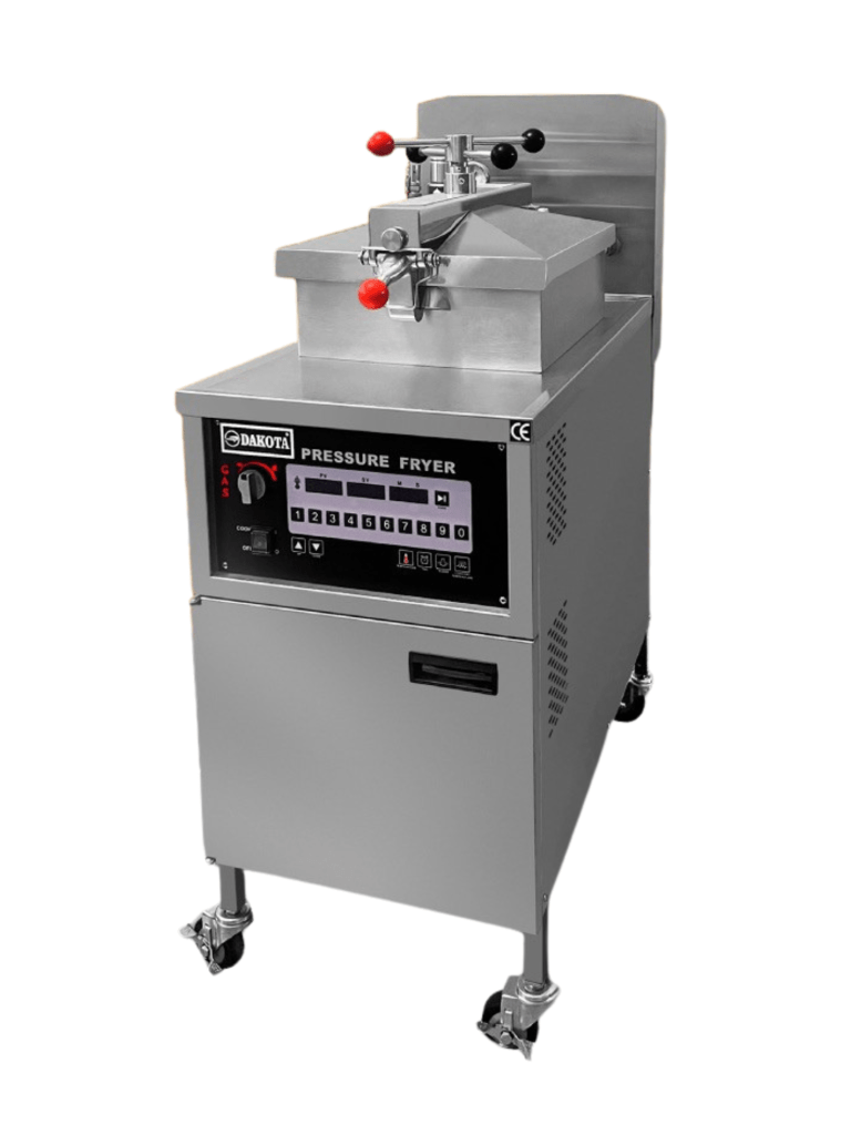Fríe pollo broaster crujiente por fuera y jugoso por dentro, con presión y temperatura controlada.